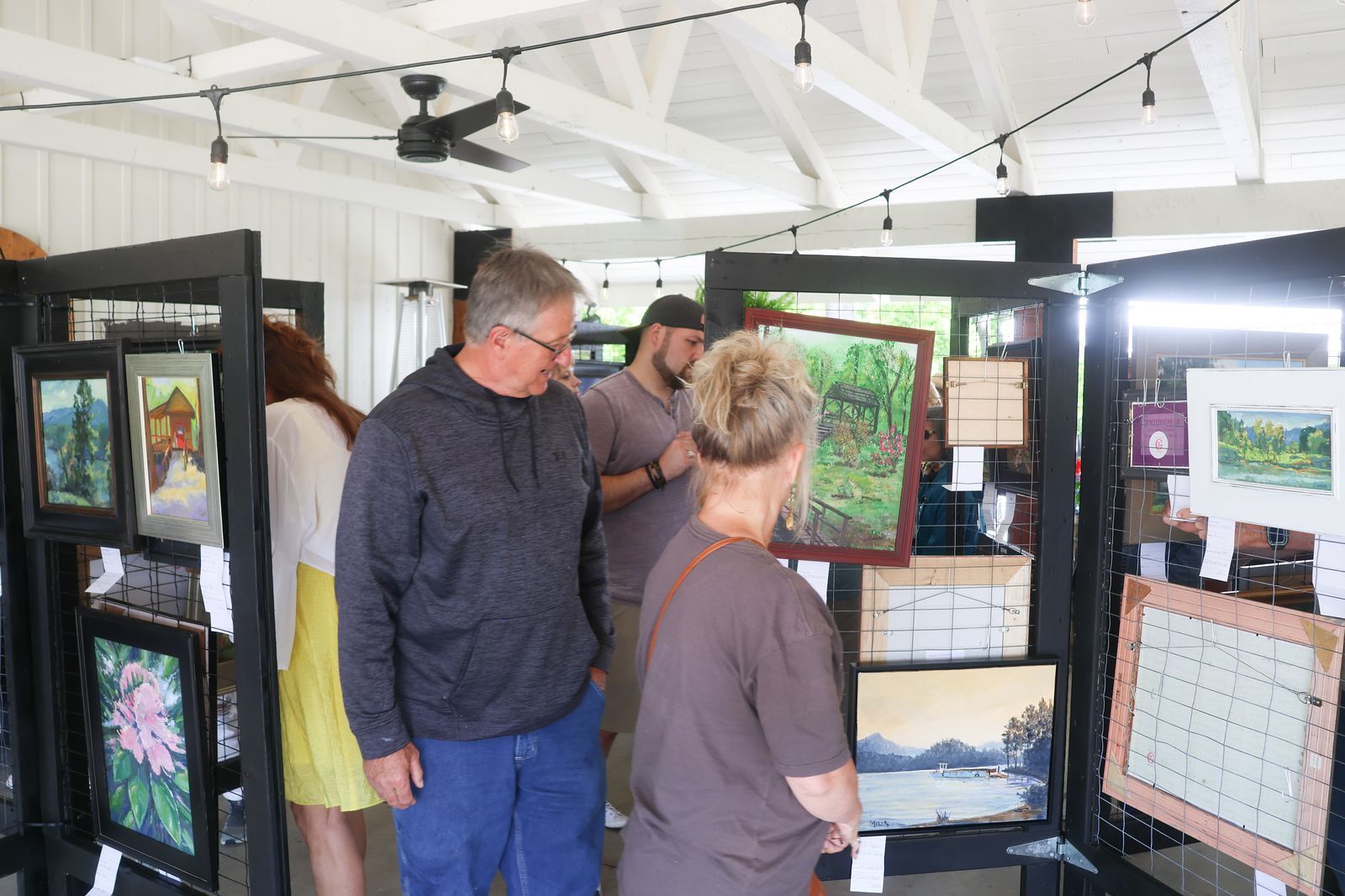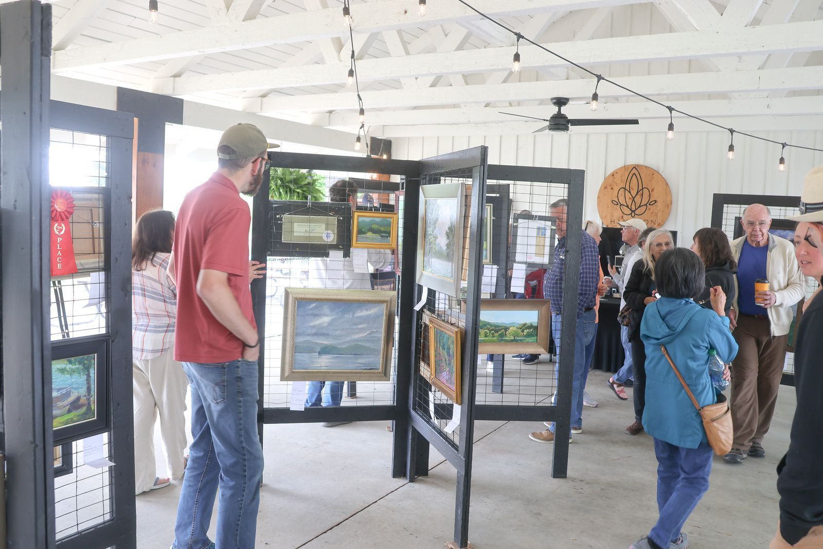 Public viewing the gallery of paintings completed during the event